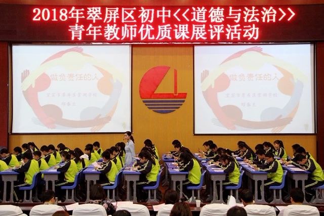 赛课中,邓春兰老师从同学们的班级自我管理入手,以日常生活中常见的小事为例,充分调动同学们的参与积极性,在热烈的互动讨论中,让同学们明白了负责任的代价,为什么要负责任,负责任的意义以及勇于承担责任的积极意义等问题。