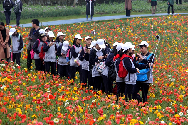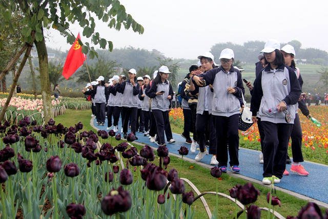 经过了一个小时的车程,同学们安全有序地抵达了位于长宁的蜀南花海景区。这里繁花似锦,依红倚翠,紫罗兰、郁金香、虞美人竞相开放……真是万紫千红,春色无边。同学们唱歌,跳舞,拍照,欢笑,尽情拥抱着春天的气息。