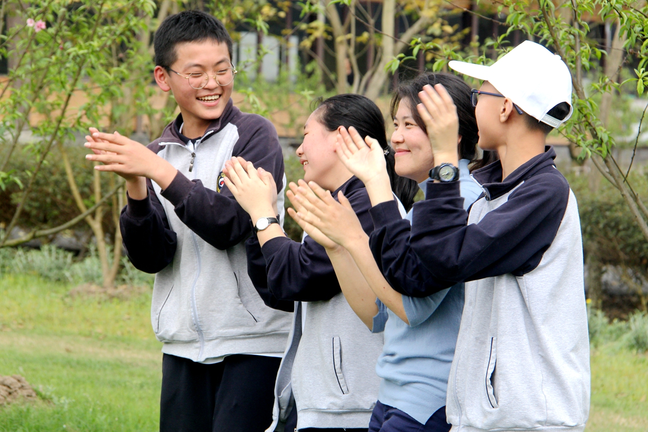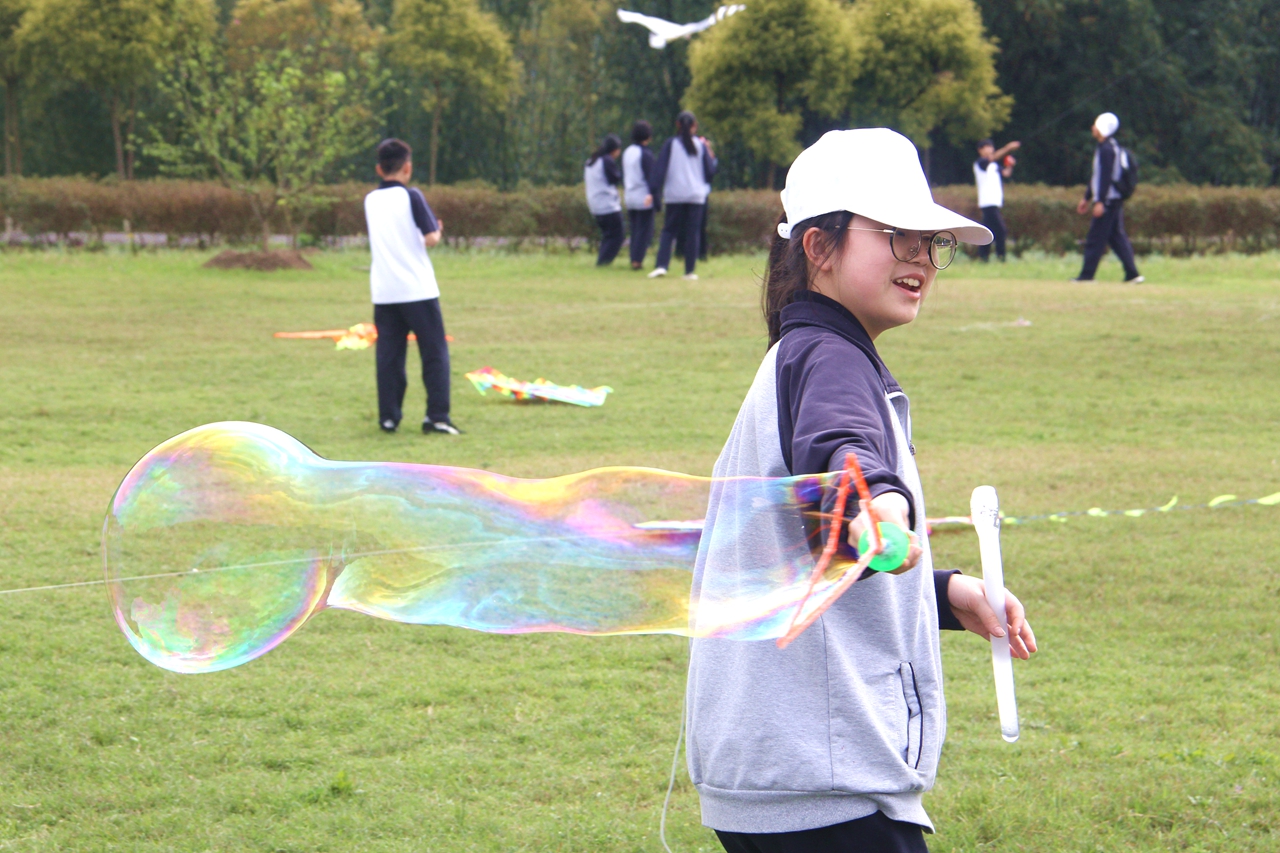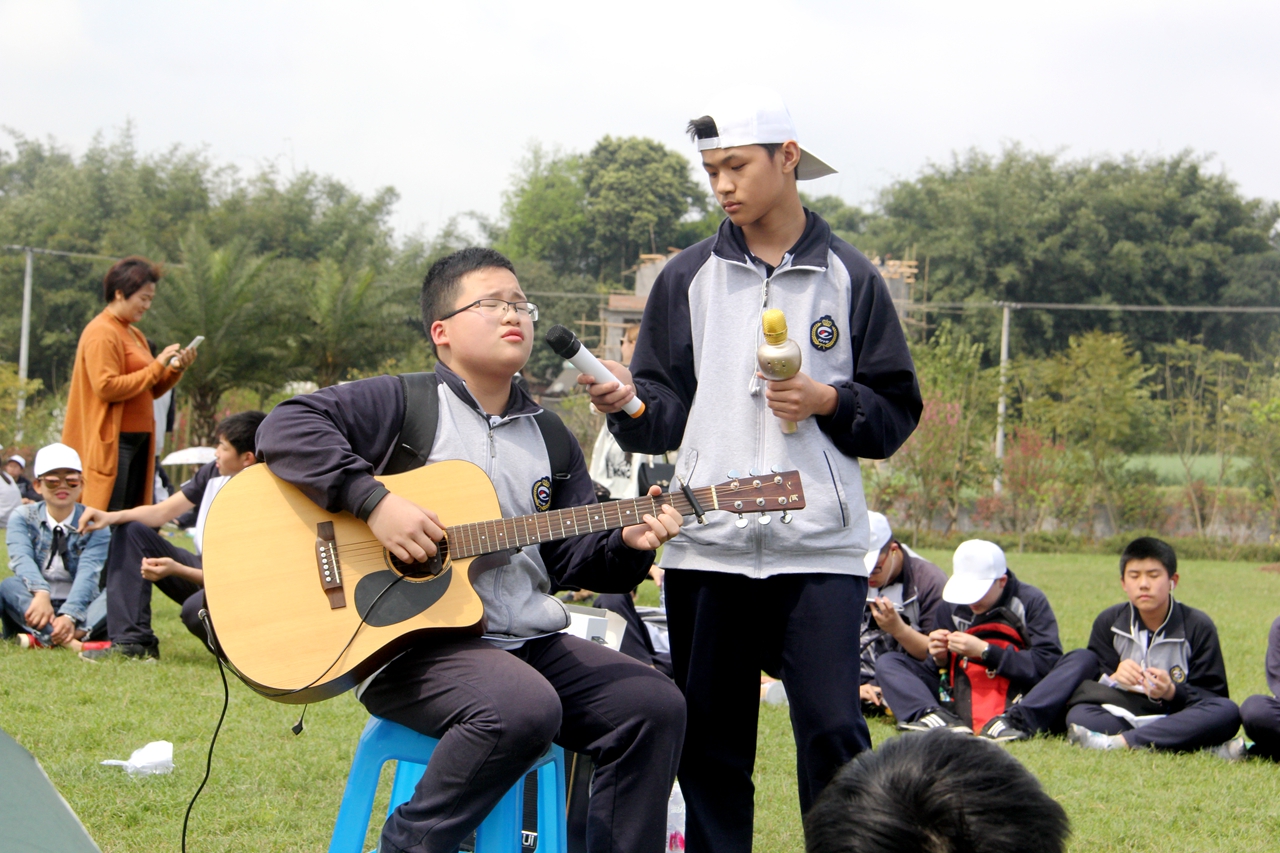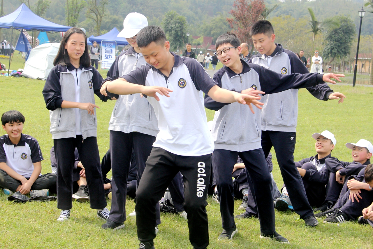 午饭过后,是各班自由活动的时间。同学们分班围成圆圈,唱歌、跳舞、放风筝、摔跤、弹吉他…… 宽阔的草坪上到处都是同学们青春跃动的身影。