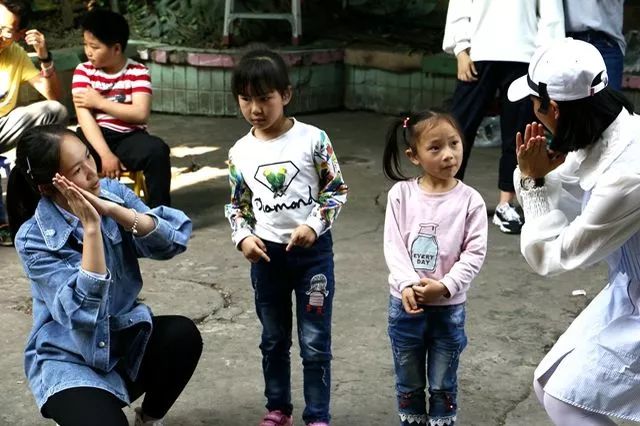 孩子们一开始对于这些陌生的大哥哥大姐姐充满了好奇和羞涩,怯生生的眼光不停打转。而微公益社的同学们为了博得孩子们的信任,尽快亲近孩子们,也是使尽了浑身解数。