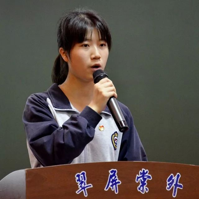 本次发言的团员代表方楠心同学同时也是绿芽微公益社的创始人,在她的带动下,绿芽微公益社多次走进敬老院、儿童福利院开展活动,获得了社会各界的一致好评,真正将青年人的社会责任化成了实际行动。她在发言中务实地谈到:“从今天开始,大家头上背了一个新的称号“团员”,团员就是模范,如何做好模范,其实就是做好小事。身边的垃圾,弯腰捡一捡,顺手的求助,尽力帮一帮,这就是修养道德,做好团员。”