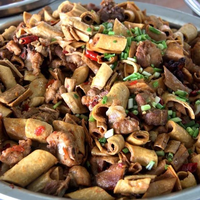 青椒肉丝、豆筋烧排骨、青笋肉丁、鱼香茄子、炝白菜、山药炒木耳、绿豆南瓜汤、苹果