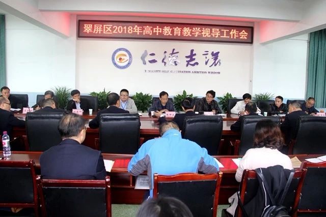 13:00,翠屏区2018年针对我校高中的教学视导工作会在区师培中心中学部刘川部长的主持下于教学楼五楼会议室召开。我校党委书记蒋启安就学校高中办学的基本情况向专家领导们进行了详尽汇报。随后,专家们不仅对我校各学科的教学现状进行了分析指导,还将自己多年的教育教学经验毫无保留的进行了交流和分享,令我校的每一位与会教师都感到受益匪浅。同时,徐斌主任和区教育局张坤乐股长对学校开展的工作和取得的成绩给予了充分肯定的同时也提出了更高的希望和要求。