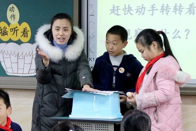 整节课,李老师以鸡蛋为主题,和孩子们一起玩转鸡蛋。在老师的启发下,孩子们用看、掂、摇、听等各种方式观察鸡蛋,有了不一样的发现。而李老师却用“让鸡蛋旋转起来”的方式让整节课活了。