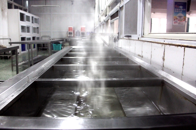 以前总是很好奇,为什么最后一节下课去吃饭菜都总是热的。今天去参观才发现,原来每一个售餐盘的下面都有热水加热系统,看来生活中处处都是小智慧啊!