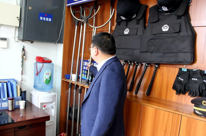 来到门卫室,宋仕伟副区长检查了我校的安保和监控设备。并强调一定要加强安保人员的日常训练,每一位安保人员都要能熟练使用各种安保消防器械,24小时严守岗位,确保孩子们的在校安全。
