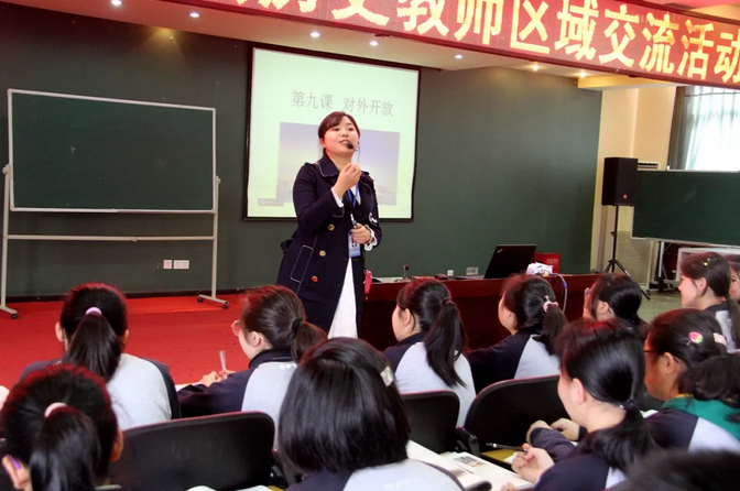 来到教学楼六楼多功能厅,交流活动正式拉开帷幕。肖楚龙、李智立、杨晓玲三位老师先后献课。从成吉思汗一统寰宇到改革开放的壮丽诗篇,再到新时代中国特色社会主义的宏伟蓝图。三堂精彩的优质课上,三位老师或诙谐幽默,俯仰之间引史论典;或娓娓道来,将改革春风吹遍课堂;或激情四射,讲述中华民族伟大复兴……可谓精彩纷呈,各有千秋。