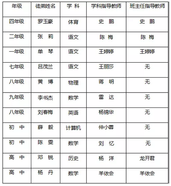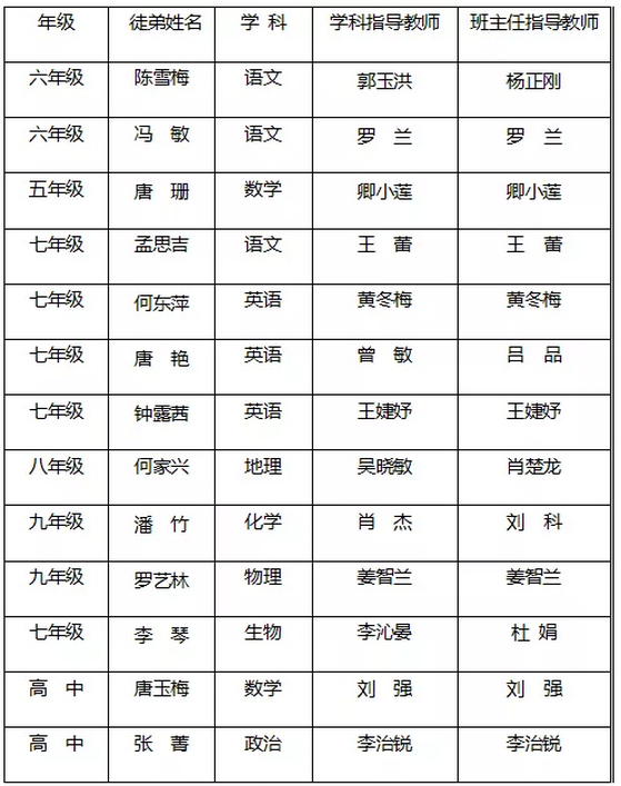 师徒结对名单