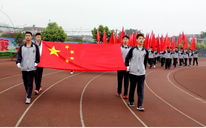 【国旗校旗方队,步履豪迈,口号铿锵】