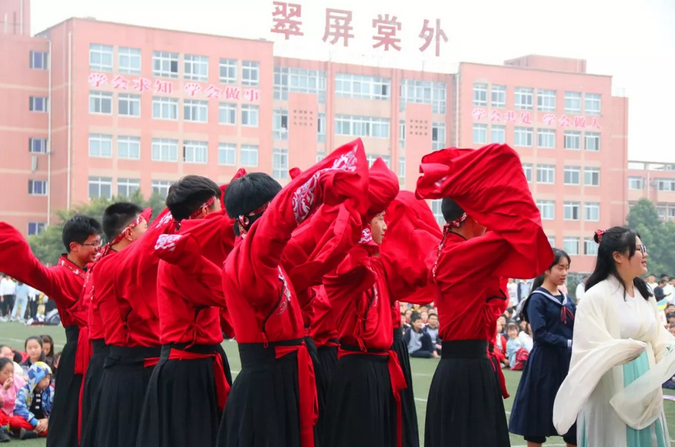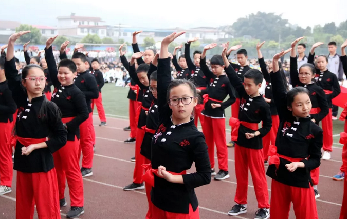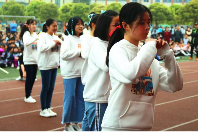 盛大的入场仪式之后,是庄严的升旗仪式,雄壮的《义勇军进行曲》响彻全场,鲜艳的五星红旗迎风冉冉升起,全体师生庄严肃立,向国旗敬礼。