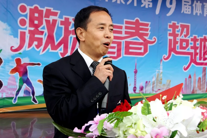 【学校副校长,总裁判长张伯华宣布运动会开幕】