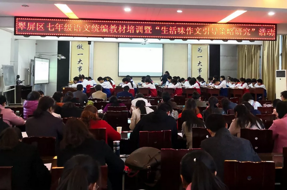 3月26日,宜宾市二中女学街校区,翠屏区七年级语文统编教材培训暨“生活味作文引导策略研究”活动中,我校肖尧文老师以“寻春”为主题,引导孩子们一起用耳朵听,用眼睛看,用鼻子嗅,用身体的每一个触觉去感知春的气息,逍遥地漫步在白居易、孟浩然、苏轼、朱自清笔下绝美的春色中,最后一起动笔写下自己感受到的美好春色,在春风十里中度过了难忘的一课。