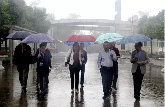 【宋仕伟(右2)、焦阳(右3)两位副区长雨中送祝福,温情满满】