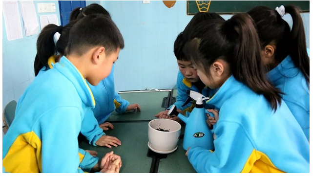 首先,老师先让同学们小组合作在教室里用小花盆播种凤仙花种子和花卉。