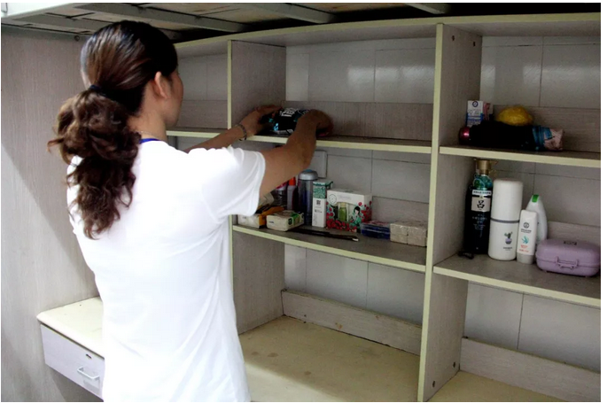 寝室里,孩子们外出训练、上课的时候,就是生活老师们最忙碌的时候了。打扫卫生,整理内务,缝补衣物,让辛苦了一天的孩子们回到寝室都总能感受到如家般的舒适和温暖。