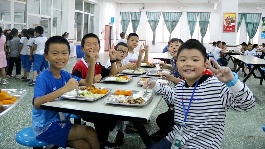 我叫刘子豪,你们看,每到中午我们都会在教室门口列队,整齐的走到食堂就餐。每天中午都有好多种菜供我们选择,鱼香肉丝,糖醋排骨,大蒜鲢鱼都很棒,不过我最喜欢的还是西餐啦!